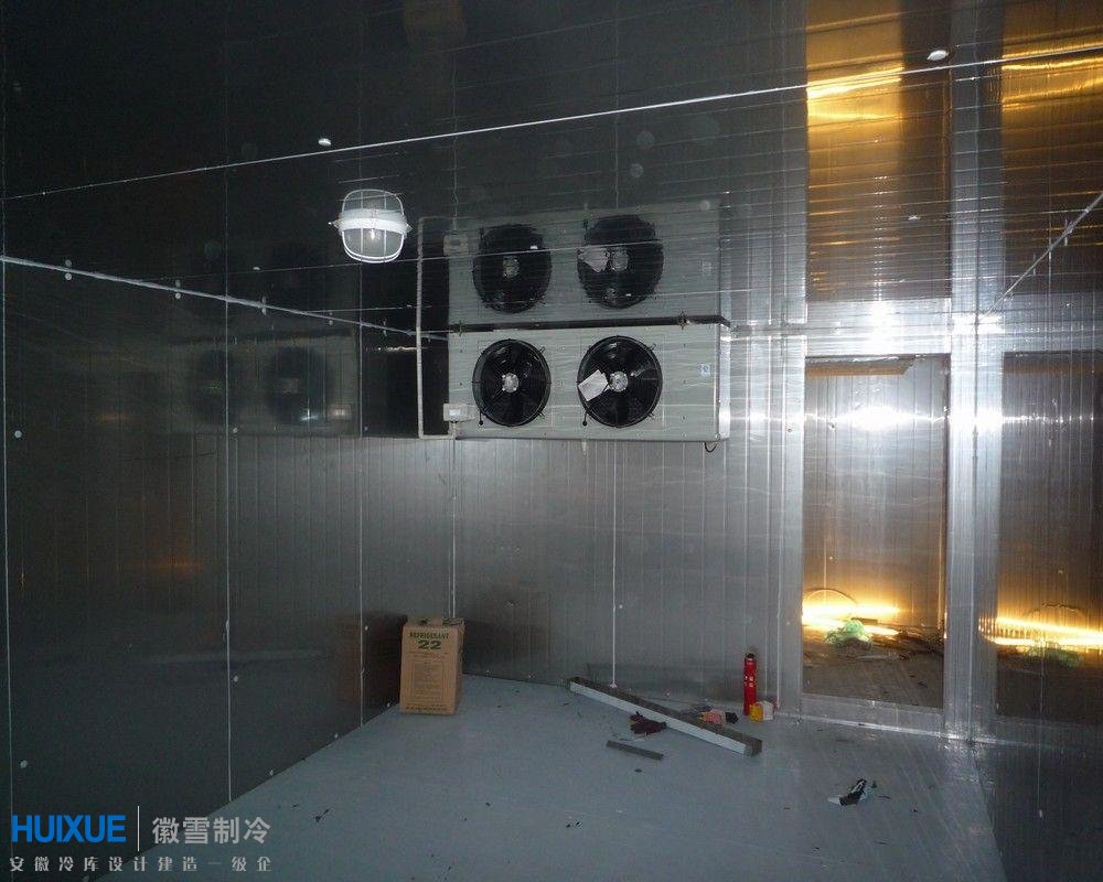 本次為馬鞍山南湖賓館設計建造的為座保鮮冷庫,為了滿足食品衛(wèi)生要求,冷庫保溫板及冷風機設備全部采用304食品不銹鋼材質。制冷機組采用谷輪半封閉風冷制冷機組。冷庫設備采用徽雪微電腦PLC自動控制系統(tǒng)實現(xiàn)24小時無人職守自動運行。