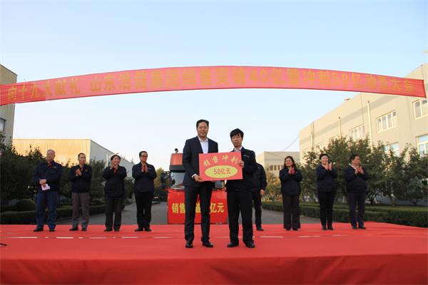 隨后,呂繼賢董事長(zhǎng)向浩信機(jī)械總經(jīng)理頒發(fā)完成40億匾牌;向集團(tuán)營(yíng)銷公司頒發(fā)沖刺50億匾牌。
